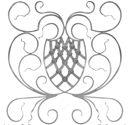 Декоративно пано от ковано желязо за врати, огради, маси, столове, цветарници, люлки, беседки, решетки и други изделия от ковано желязо.